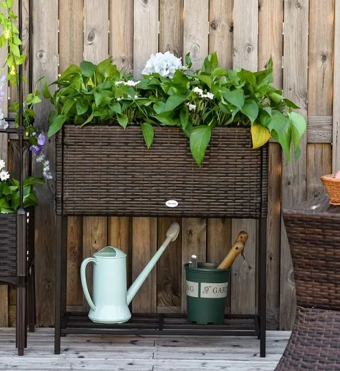 تخت باغی مرتفع 48x24x32 اینچی چوبکاری مرتفع با چرخهای قابل قفل، قفسه ذخیرهسازی، آستر