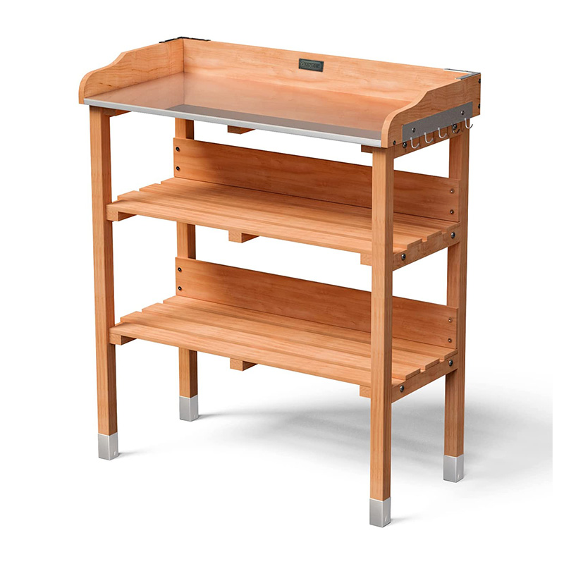 تخت باغی مرتفع 48x24x32 اینچی چوبکاری مرتفع با چرخهای قابل قفل، قفسه ذخیرهسازی، آستر